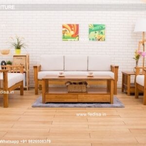 लिविंग रूम के लिए लकड़ी का सोफा सेट, एडॉर्न होमज़ दो सीटर सोफा सेट कीमत, लकड़ी से बना सोफा