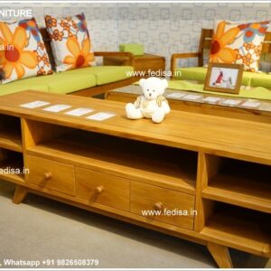एल आकार का लकड़ी का सोफा वेकफिट लकड़ी का सोफा सेट सोफा सागवान लकड़ी का सोफा सेट टीपोय के साथ