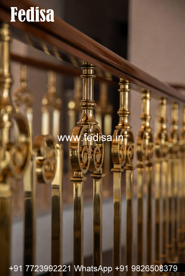 Antique Brass Balcony Railing Design For Interiors Modern Glass Staircase