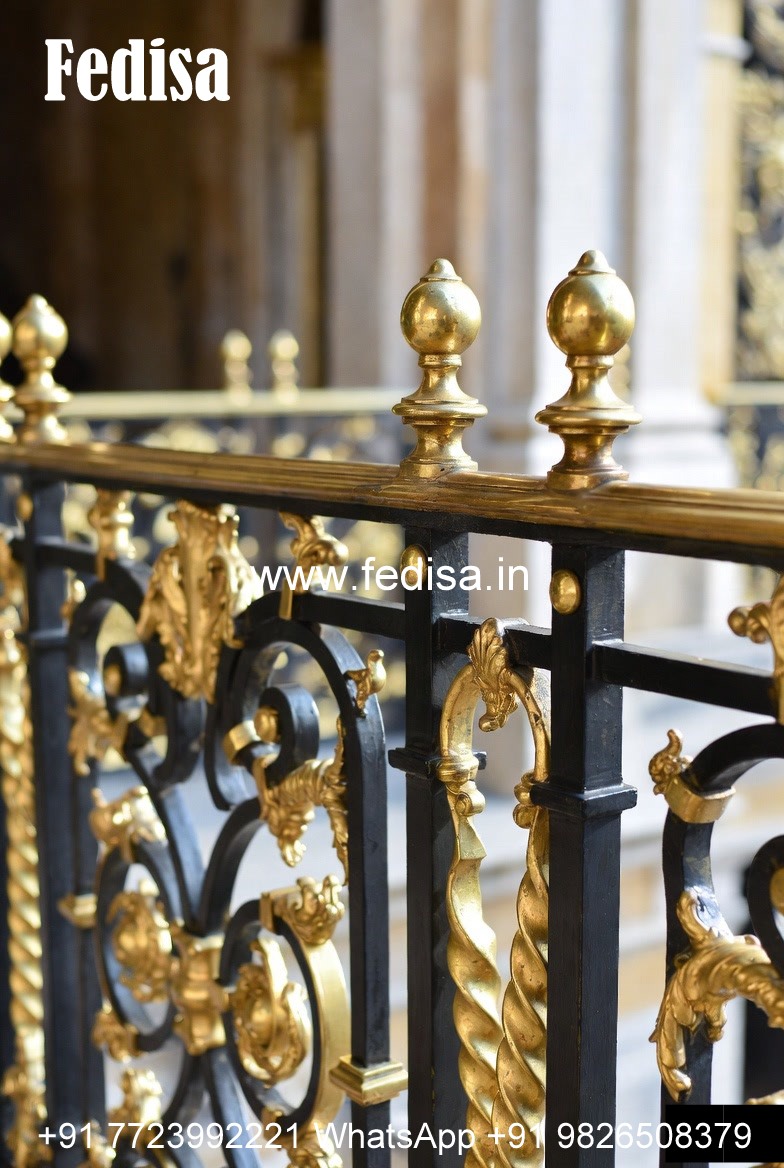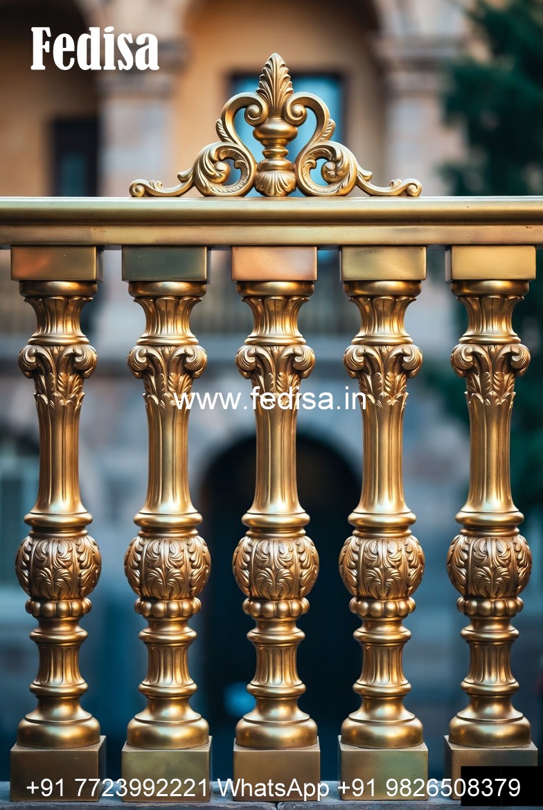 Traditional Brass Railing Design With Carving Work Outside Stairs Design For Indian Houses