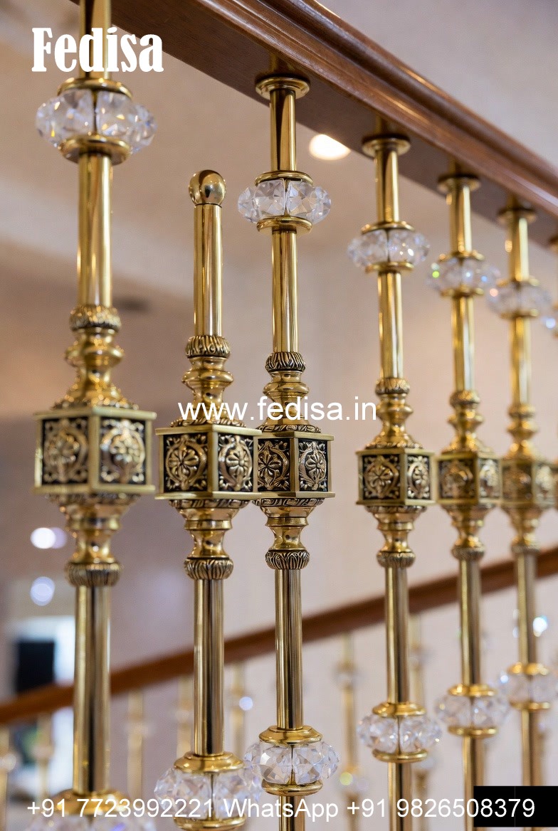 Traditional Brass Railing Design With Carving Work Outside Stairs Design For Indian Houses