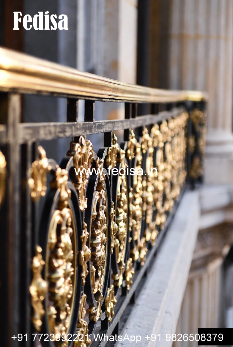 Antique Brass Balcony Railing With Classic Style Outdoor Cement Stairs Design
