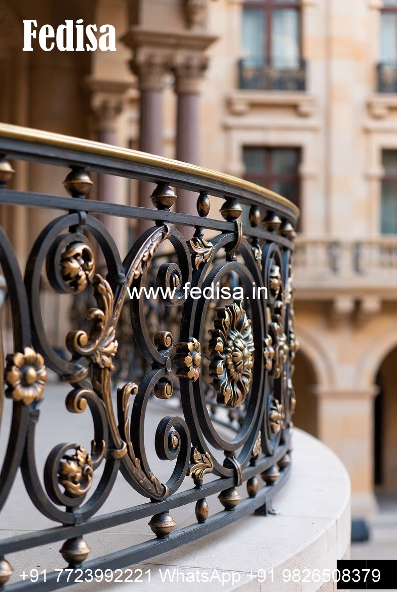 Antique Brass Balcony Railing With Designer Look House Plans With Two Separate Staircases