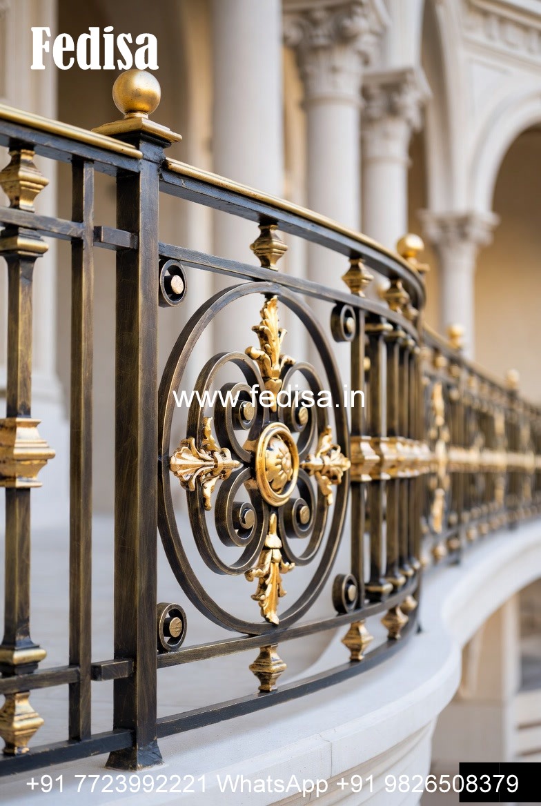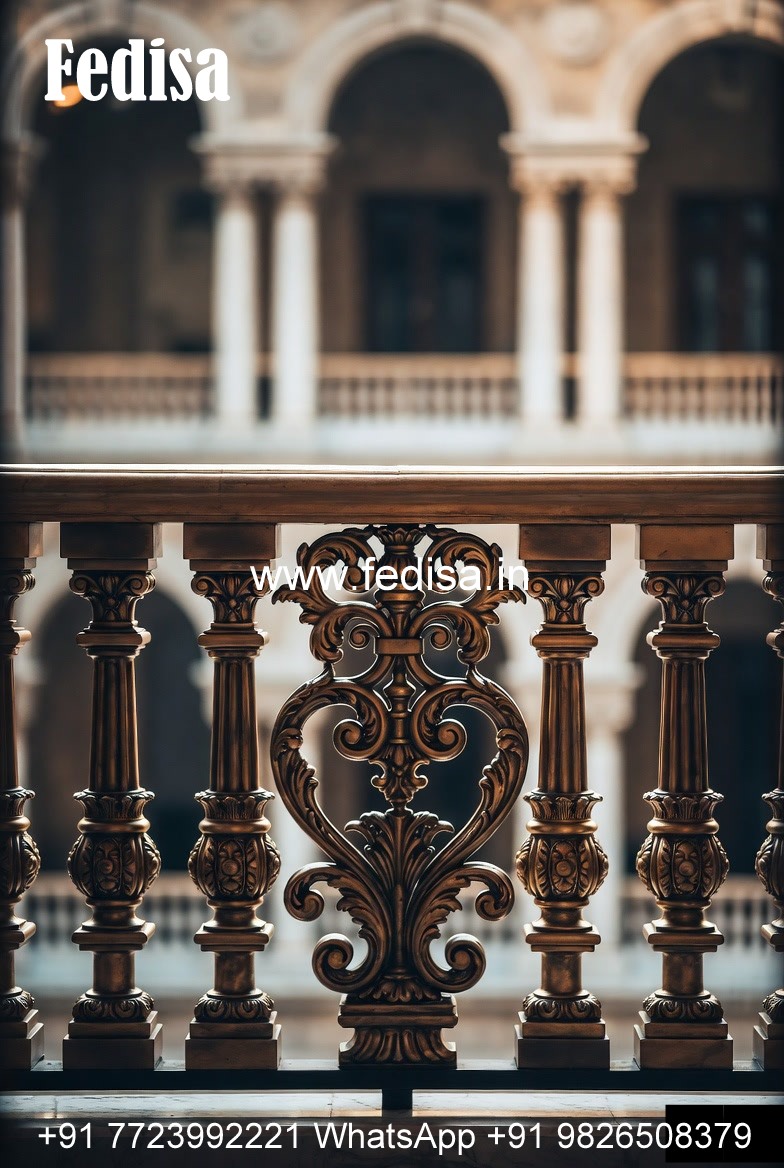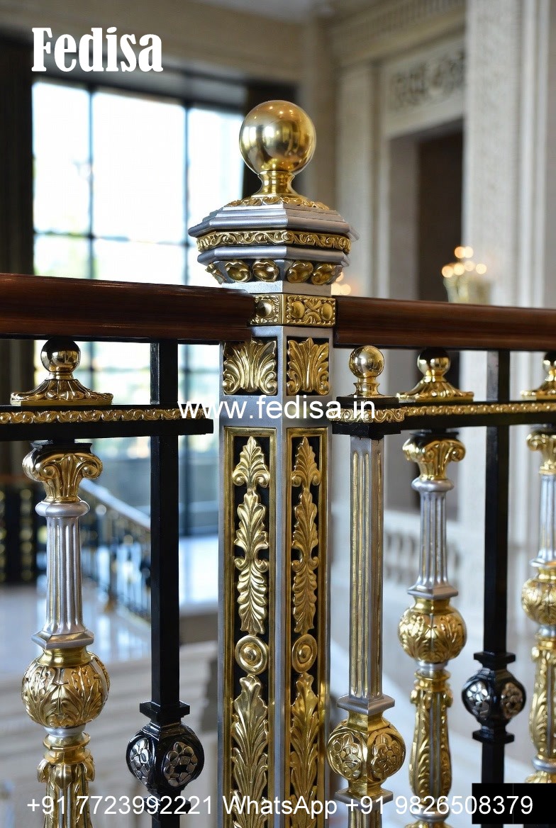 Antique Brass Stair Railing For Classic Homes Staircase Design With Wood And Glass