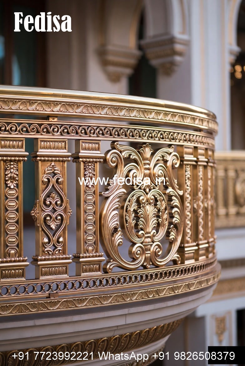 Antique Brass Staircase Railing For Royal Homes Round Balcony Grill Design