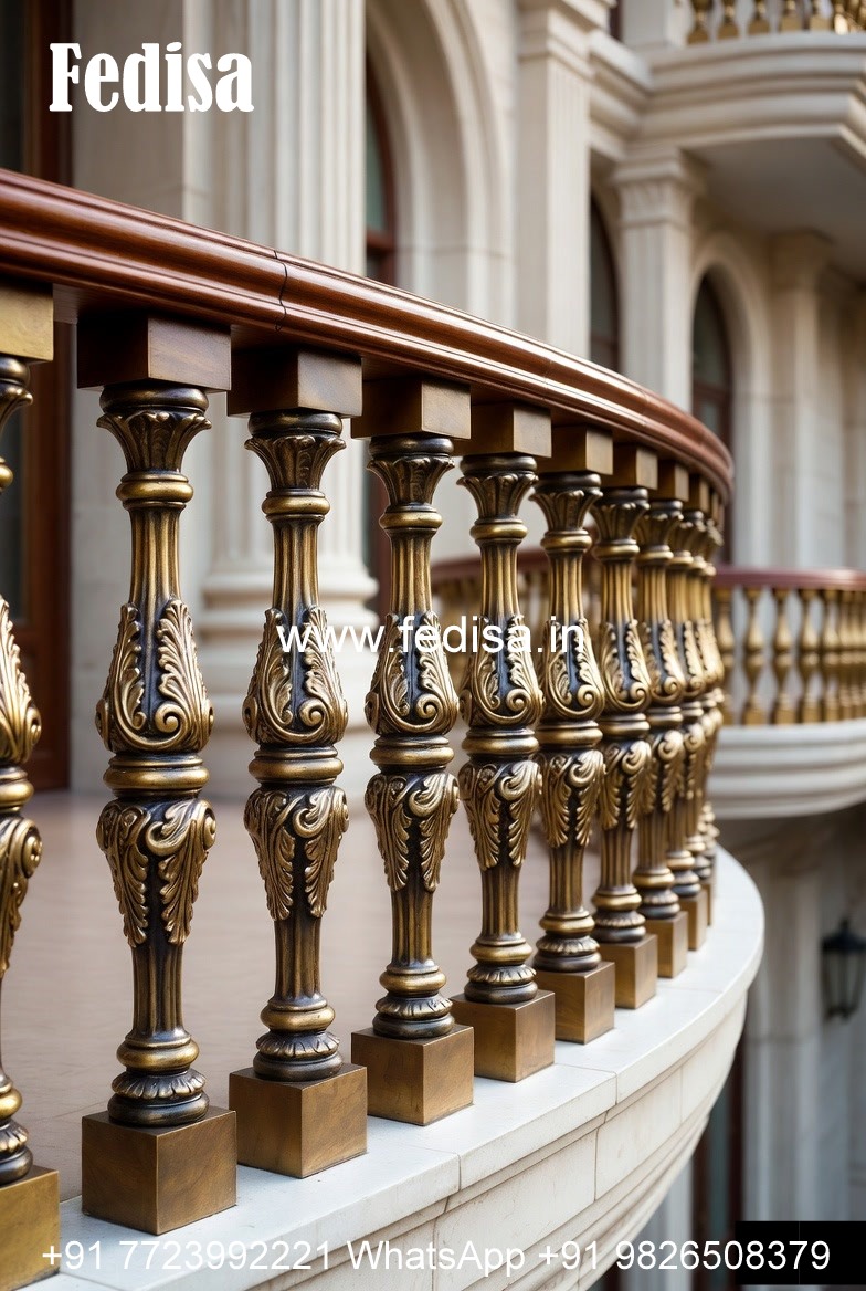 Elegant Brass Balcony Railing With Designer Look Metal Staircase Design