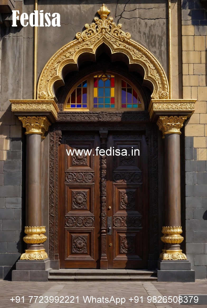 Arch Top Wooden Door Door With Grill Design No-13863