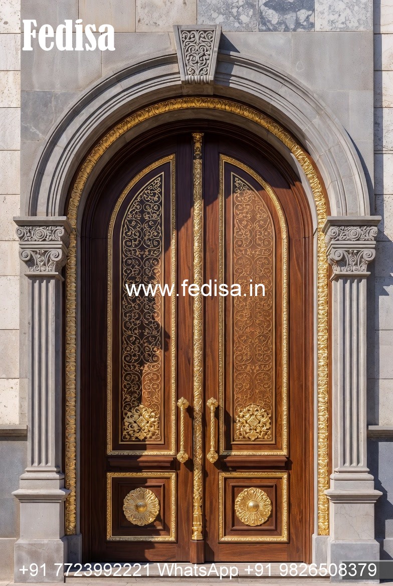 Arch Top Wooden Door House Entrance Canopy Design No-12715