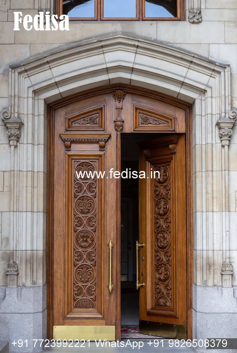 Arch Top Wooden Door Iron Jali Gate Design No-13740