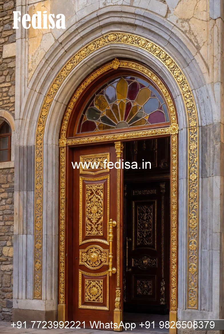 Arch Top Wooden Door Sagwan Main Double Door Design No-12264