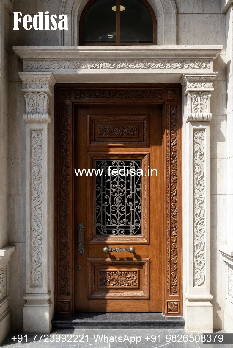 Arch Top Wooden Door Steel Jali Design For Main Door No-10829