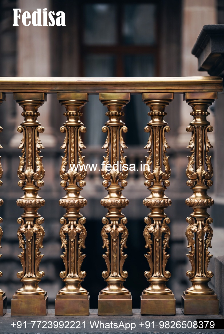 Traditional Brass Railing Design With Carving Work Outside Stairs Design For Indian Houses