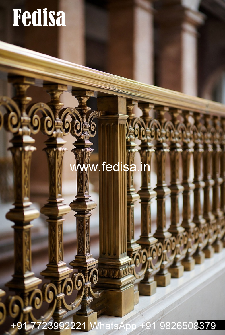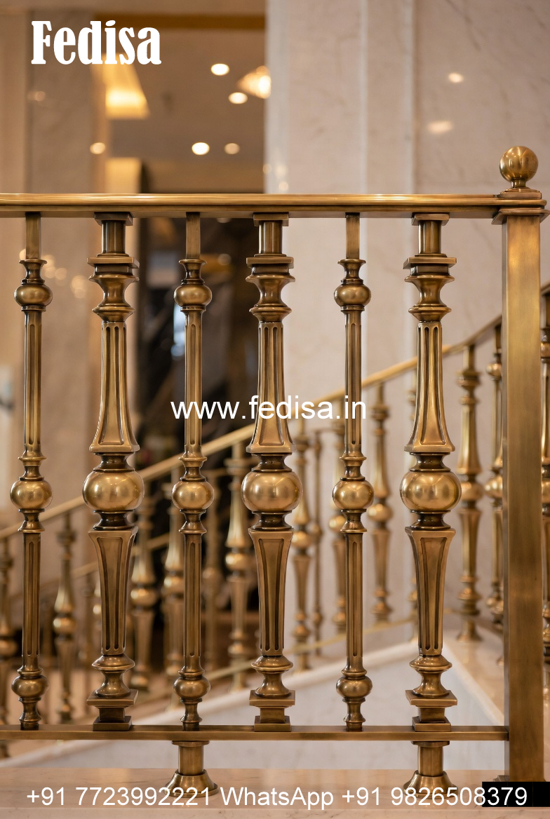 Decorative Brass Railing Design With Floral Patterns Stair Design For Small House