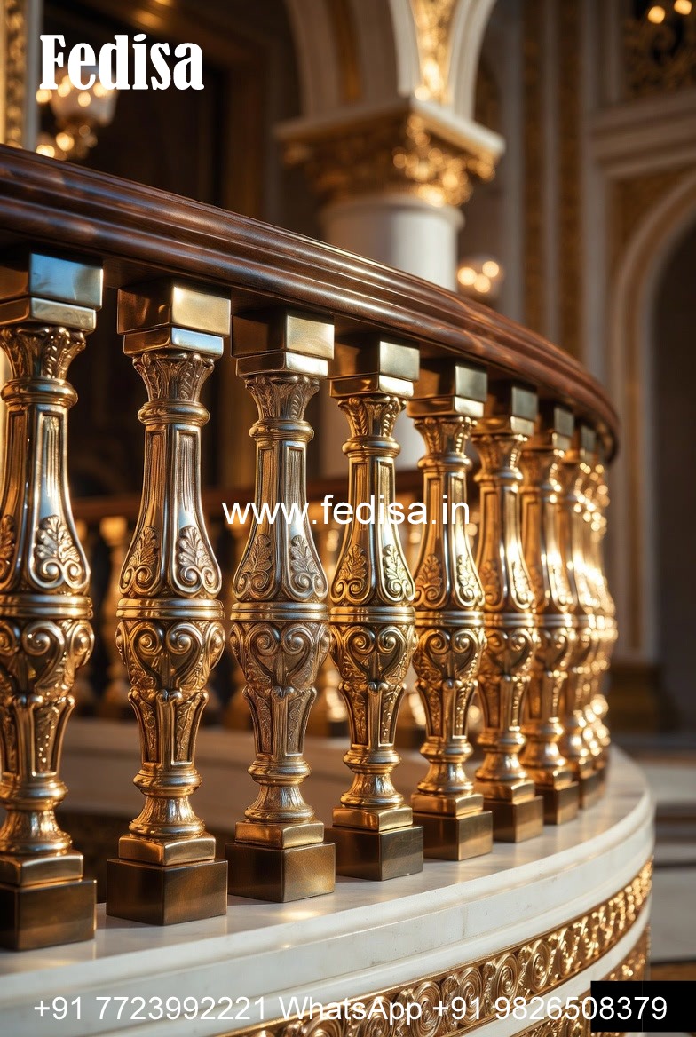 Brass Railing Design With High-end Finish Round Concrete Stairs Design