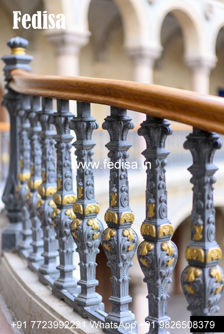 Traditional Brass Railing Design With Carving Work Outside Stairs Design For Indian Houses