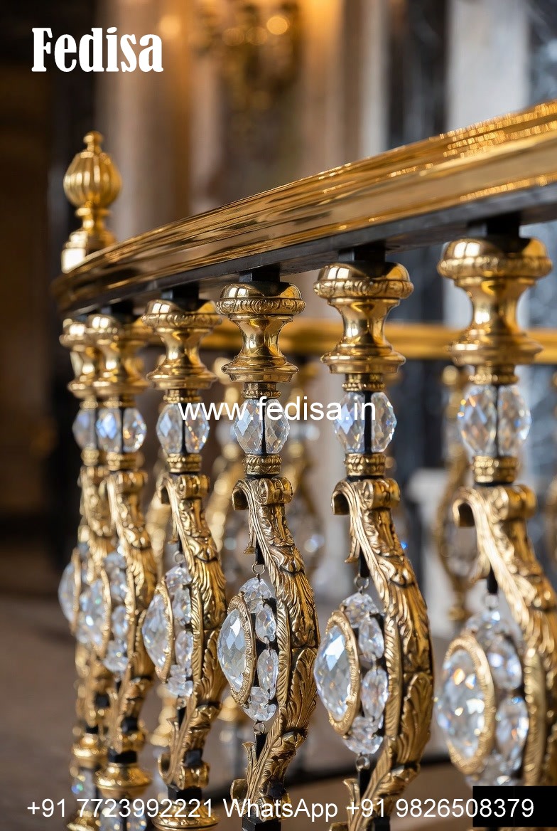 Decorative Brass Railing Design With Floral Patterns Stair Design For Small House