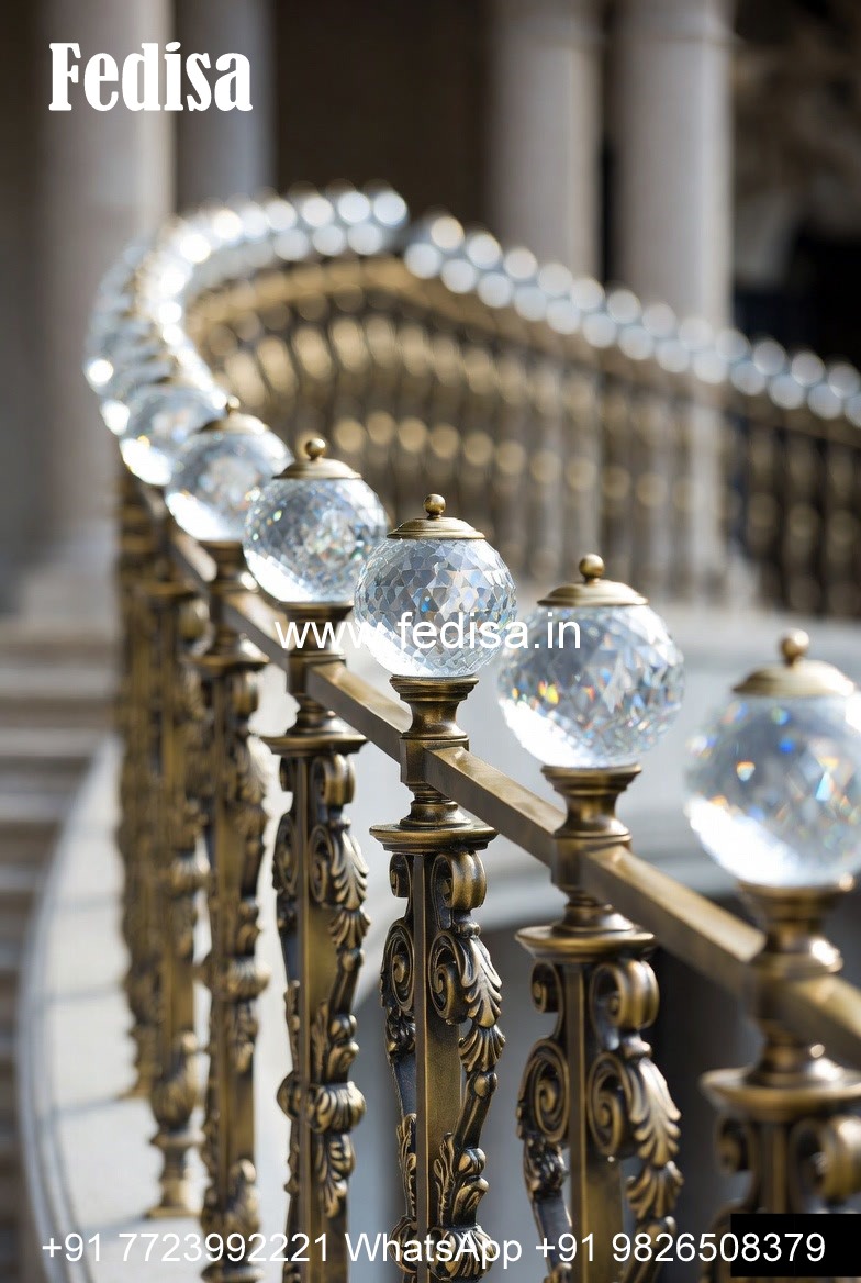Brass Stair Railing Design With Premium Finish Glass And Steel Railing Design