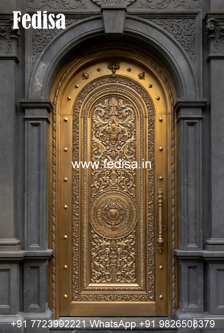 Brass Staircase Handrail With Classic Touch Corner Window Grill Design