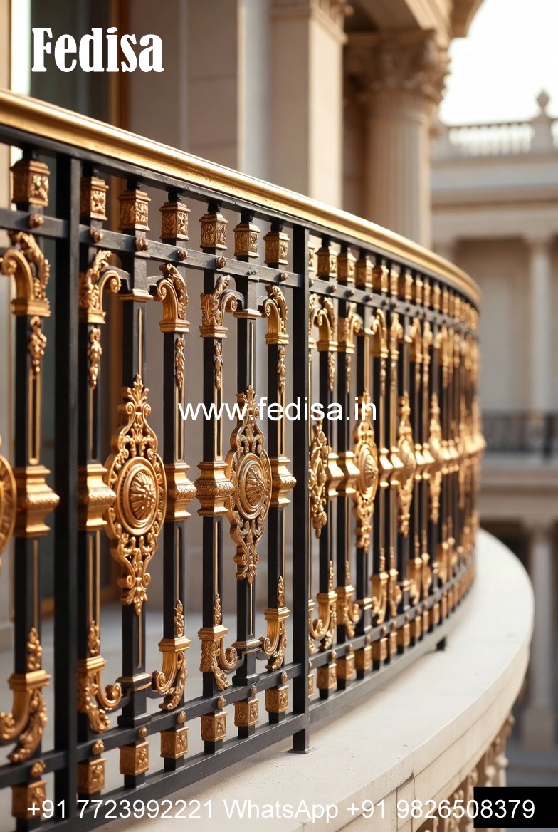 Classic Brass Staircase Design For Luxury Homes Steel Grill With Glass Price