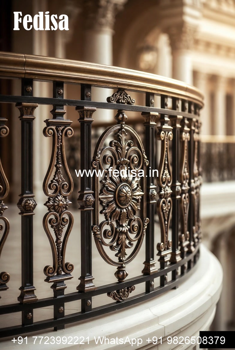 Brass Balcony Railing Design With Decorative Finish Stairs Pop Design
