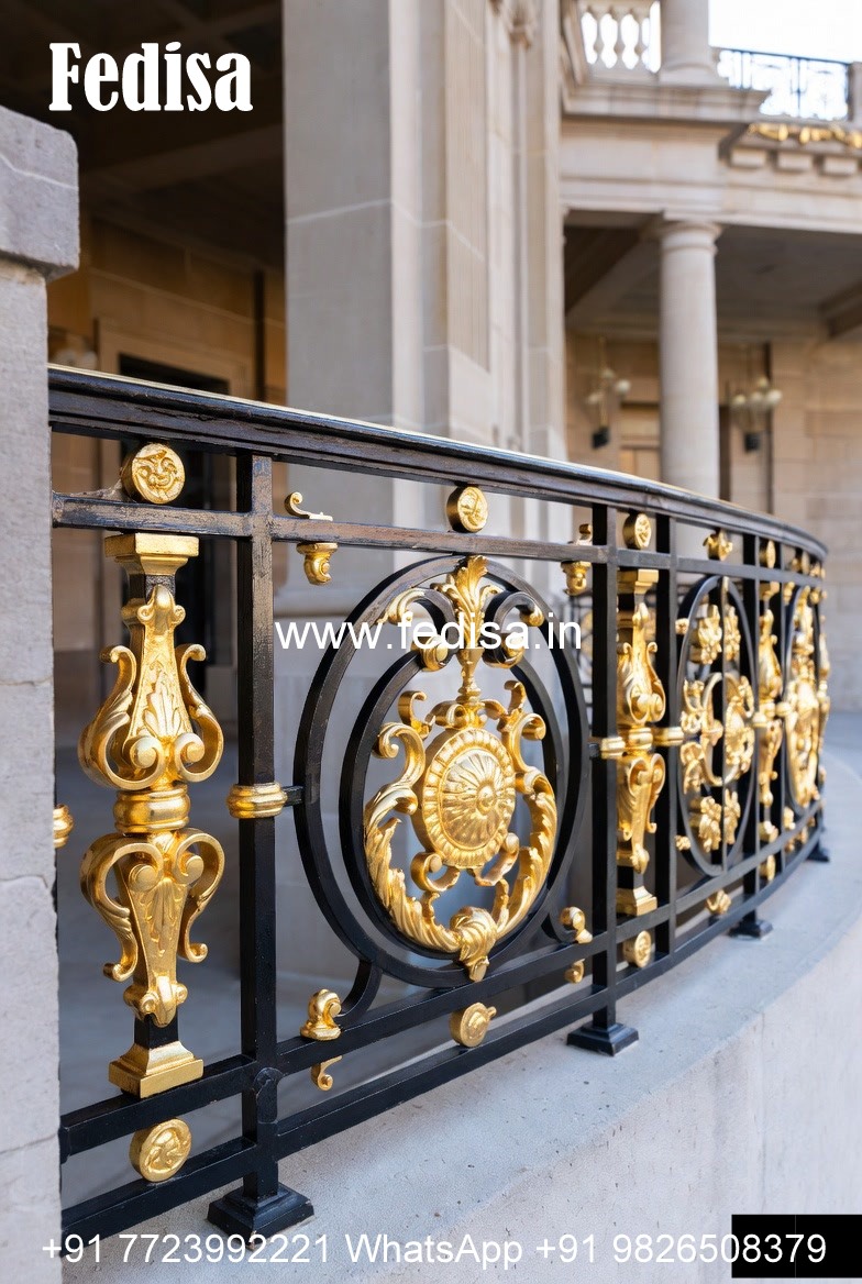Decorative Brass Balcony Railing With Artistic Work Staircase Railing Design With Glass