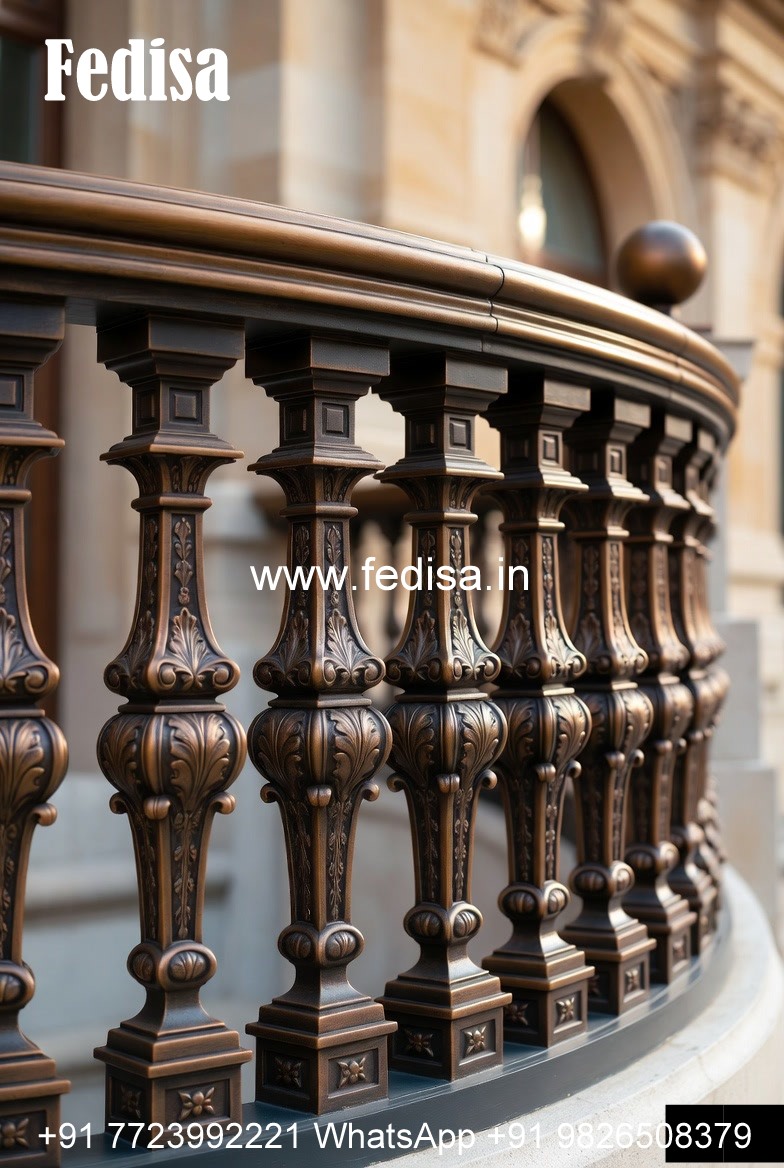 Traditional Brass Railing Design With Carving Work Outside Stairs Design For Indian Houses