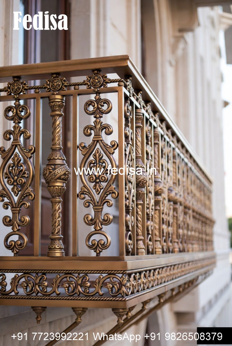 Decorative Brass Handrail With Artistic Detailing Duplex Round Stairs Design