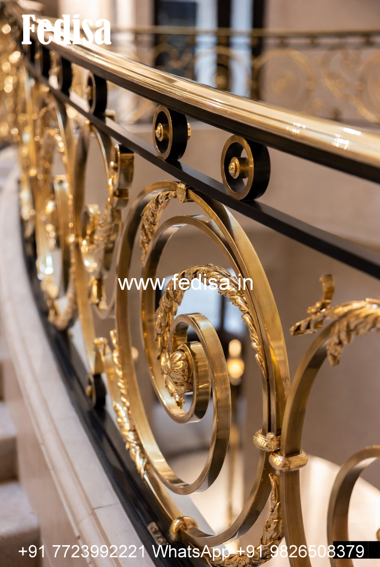 Designer Brass Staircase Railing For Luxury Homes Ladder Design