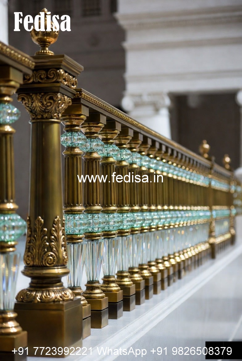 Decorative Brass Staircase Railing With Fine Finish Stainless Steel Main Door Grill Design