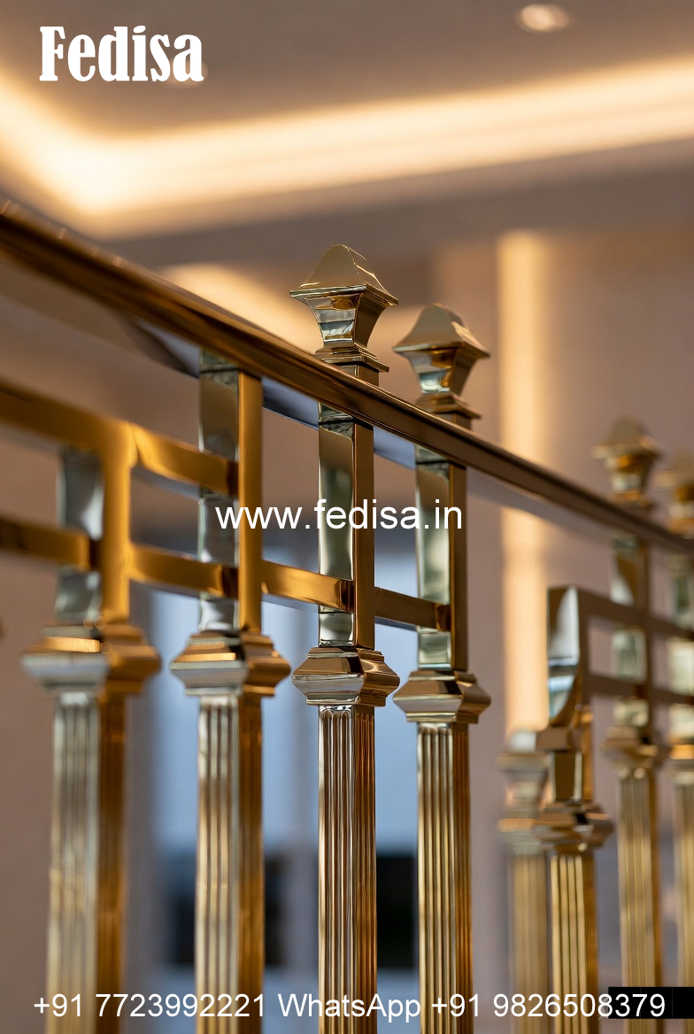 Designer Brass Balcony Railing Collection Round Steel Stairs Design