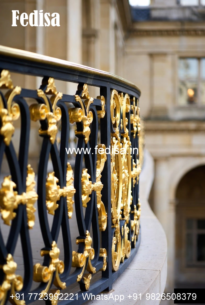 Designer Brass Handrail For Premium Staircases Gate Top Grill Design