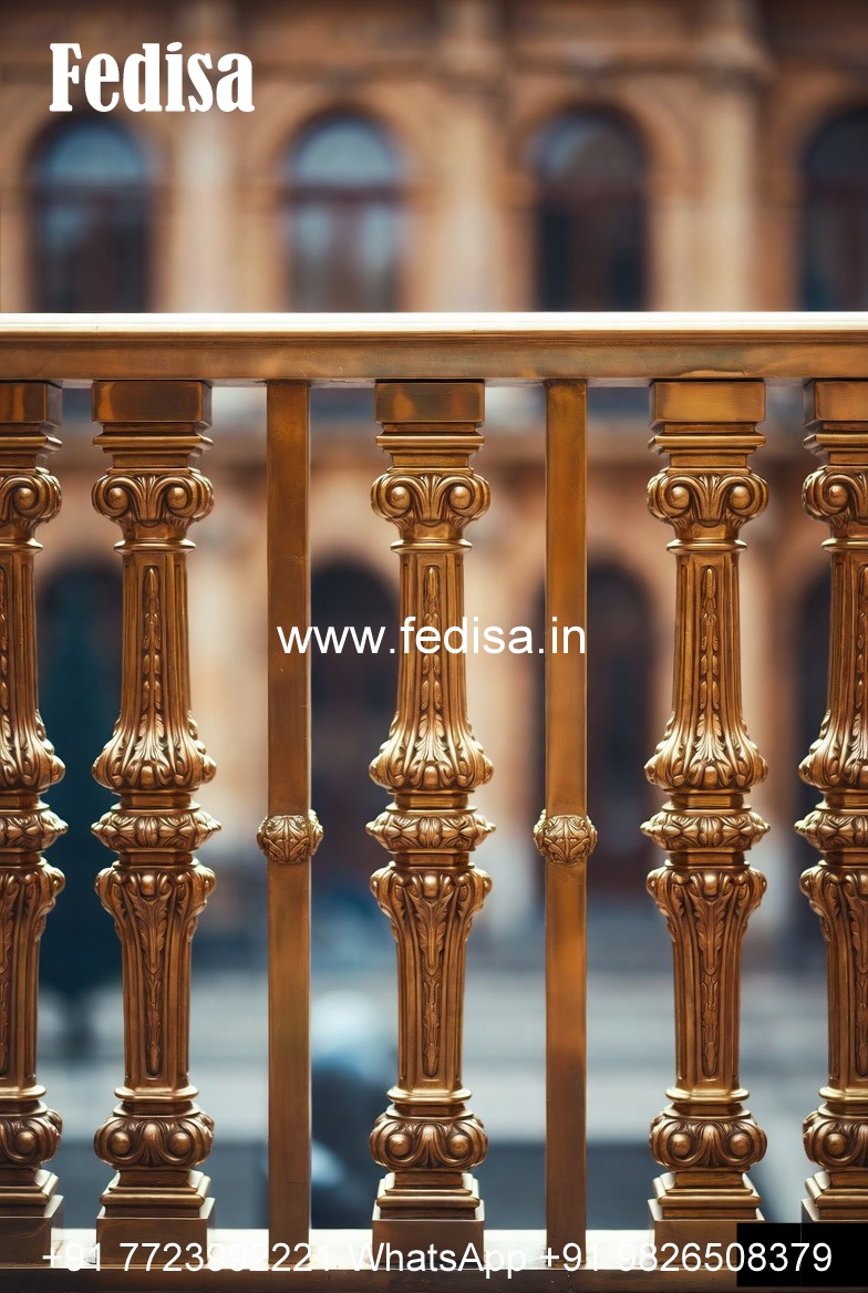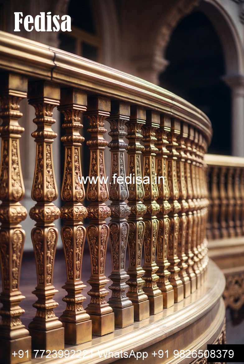 Designer Brass Railing Design With Artistic Finish Marble Design In Stairs