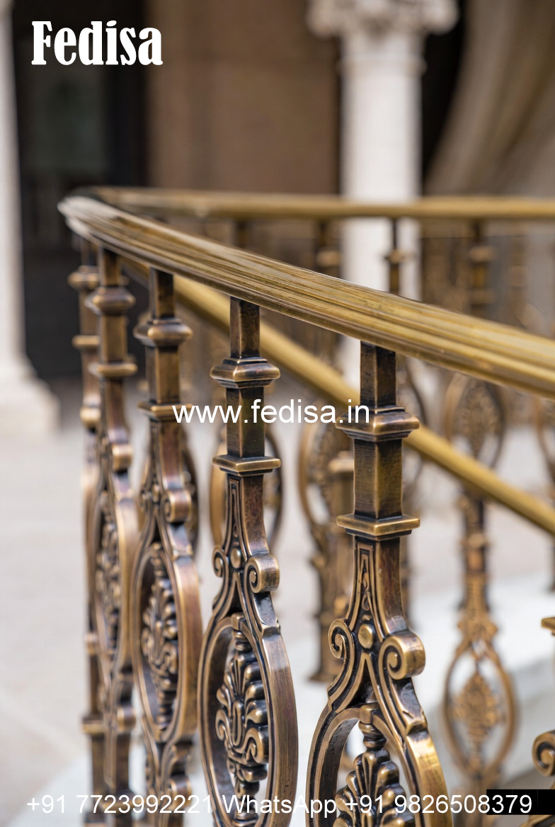 Designer Brass Stair Railing With Artistic Work Industrial Staircase Design