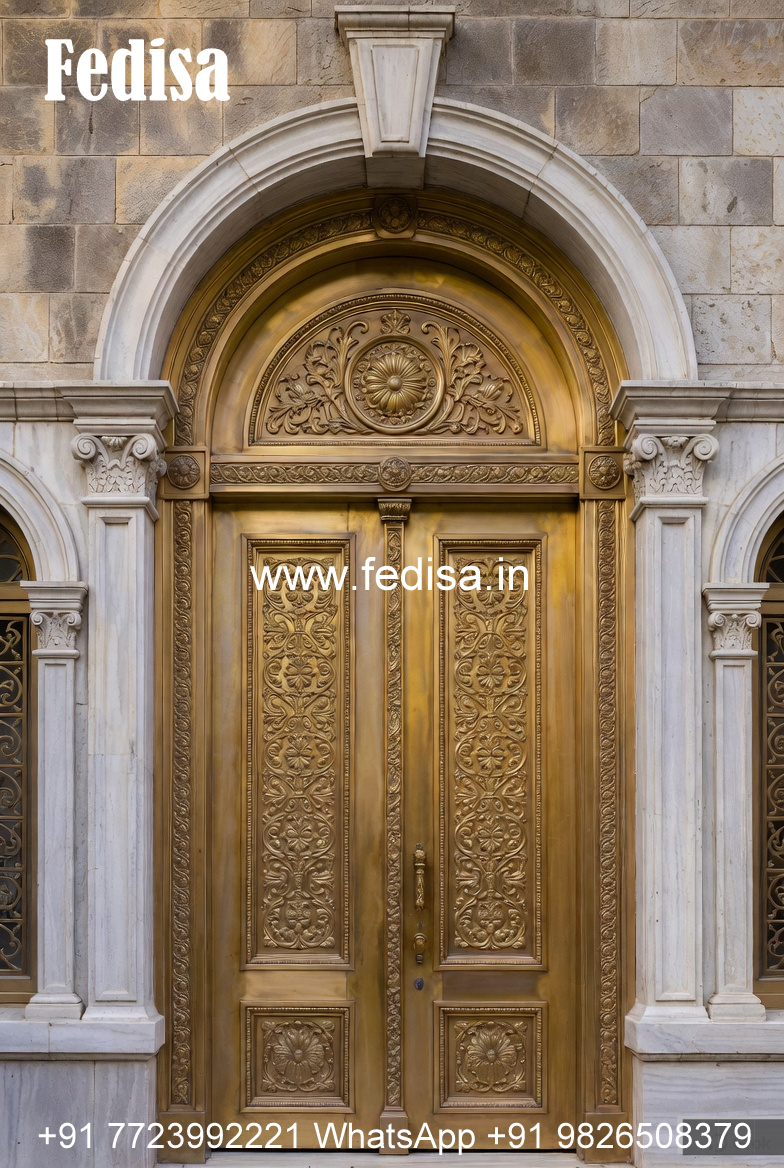 Designer Brass Stair Railing With Artistic Work Industrial Staircase Design