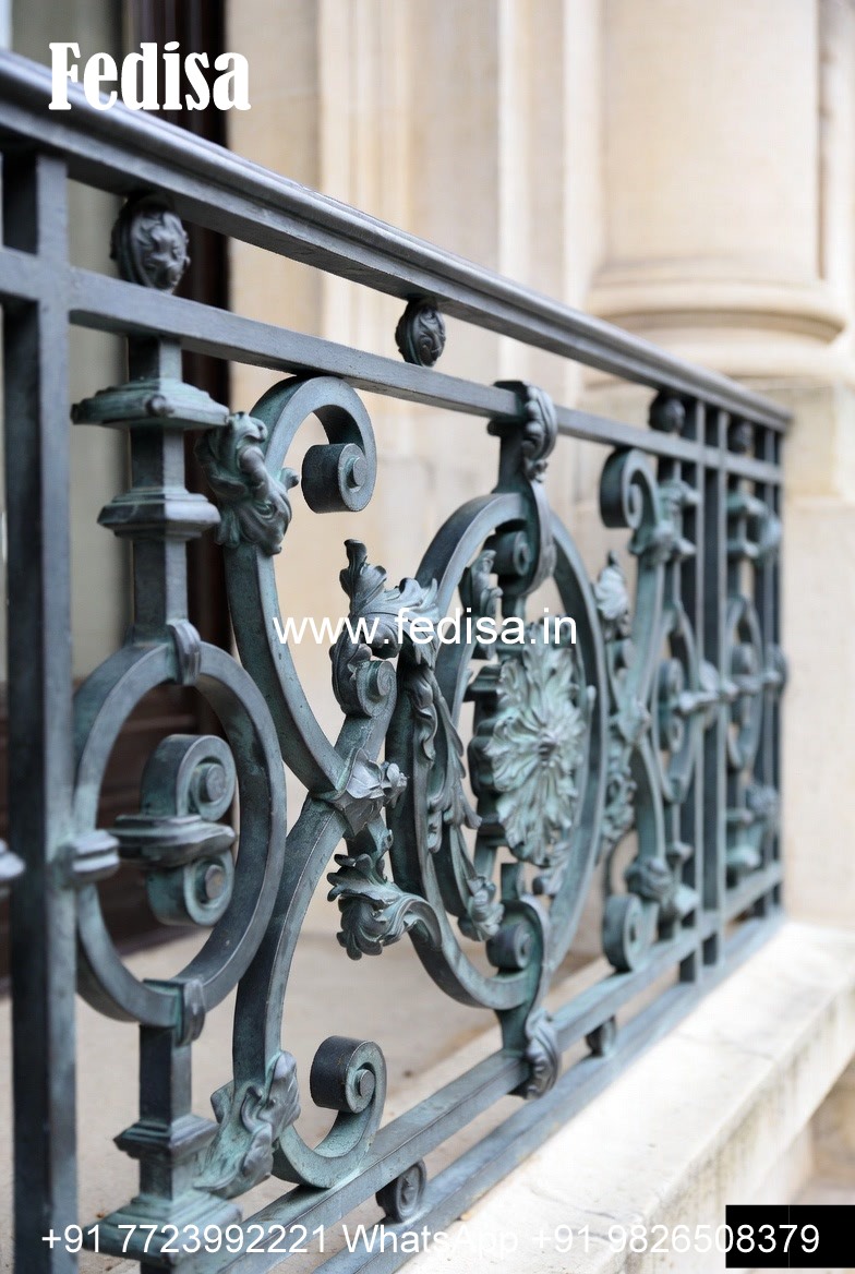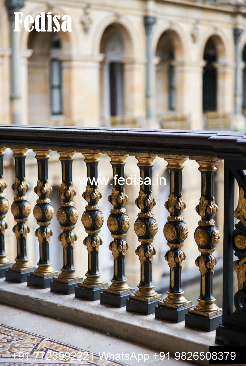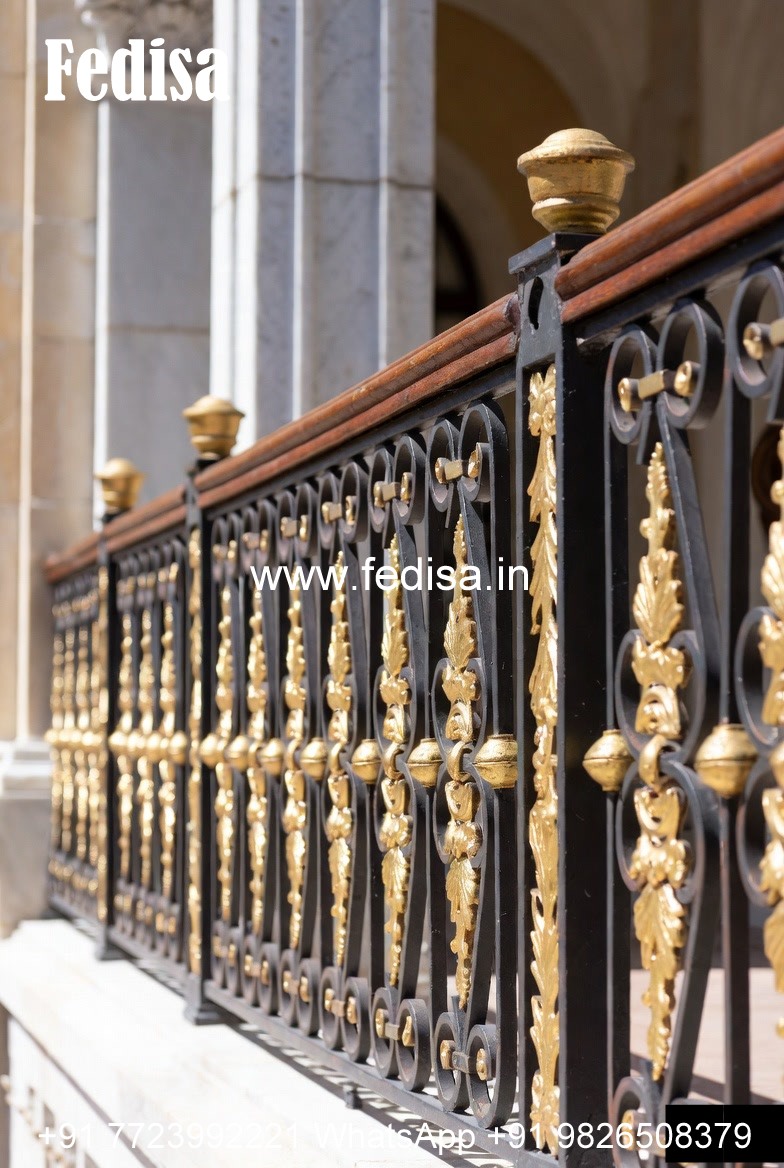 Designer Brass Stair Railing With Artistic Work Modern Grill Design Window