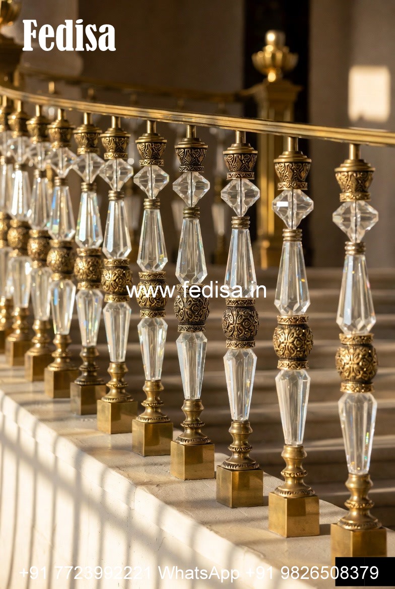 Designer Brass Staircase Handrail For Homes Fully Covered Balcony Grill Design
