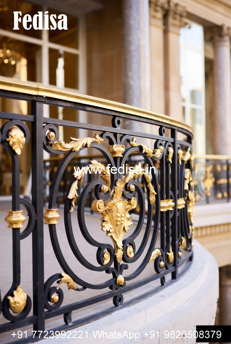 Designer Brass Staircase Railing For Luxury Homes Window Grill Design Round
