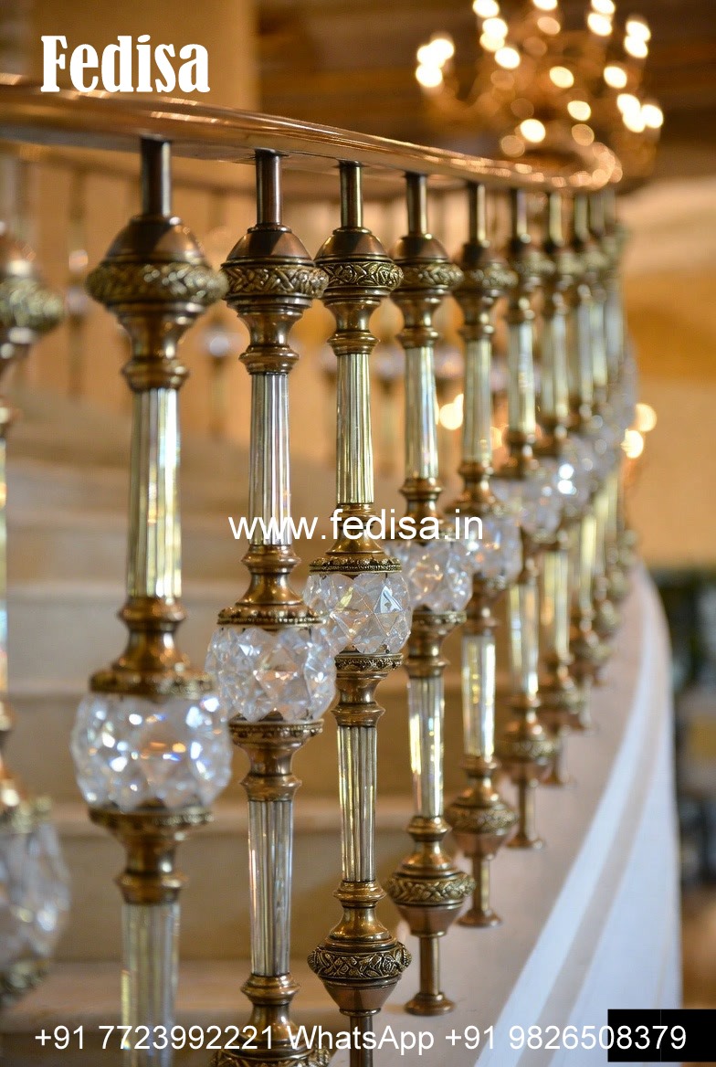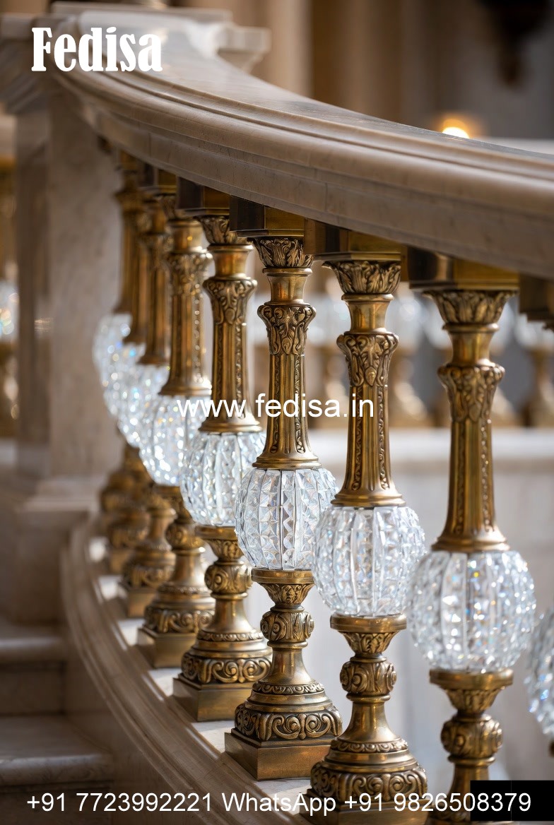 Designer Brass Staircase Railing With Classic Appeal Balcony Steel Railing Glass Design