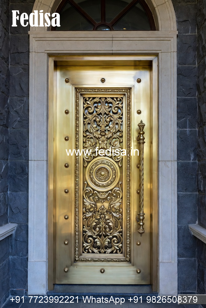 Designer Brass Staircase Railing With Classic Appeal Grills For Sliding Window