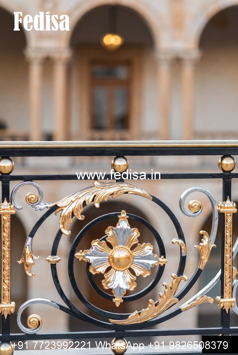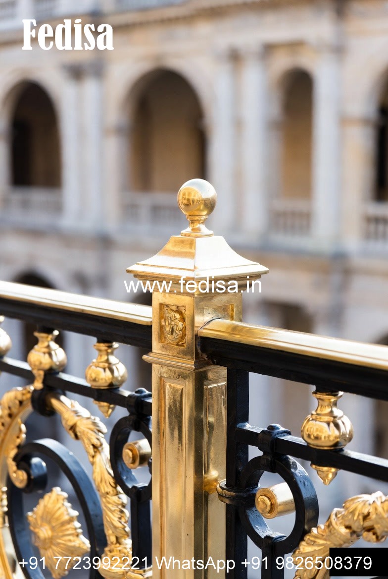 Brass Balcony Railing Design With Decorative Finish Stairs Pop Design