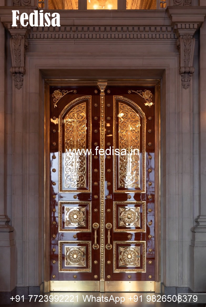 Double Door Classic Style Plywood Door Design With Glass No-12673