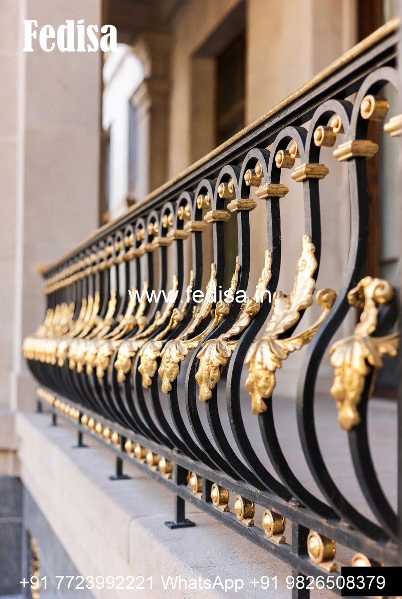 Brass Balcony Railing Design With Decorative Finish Stairs Pop Design