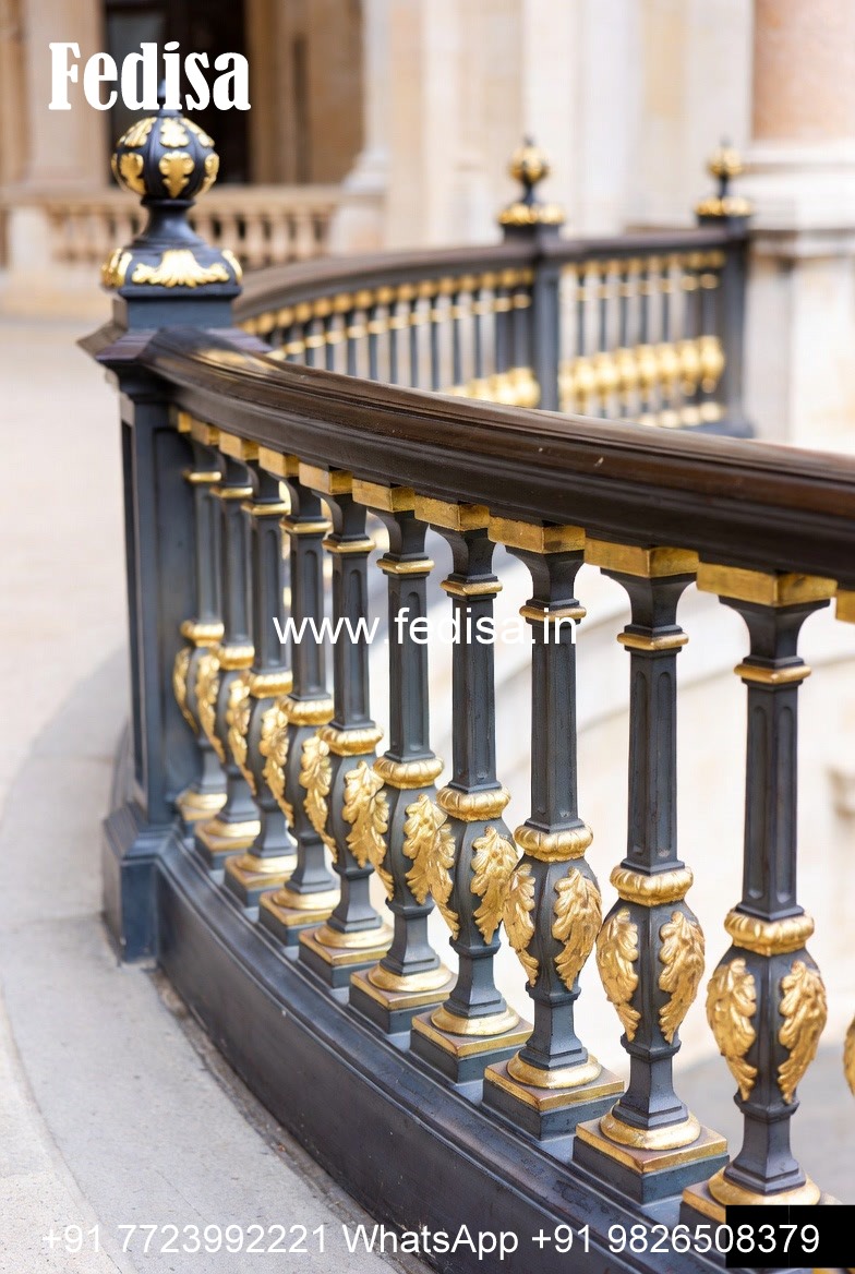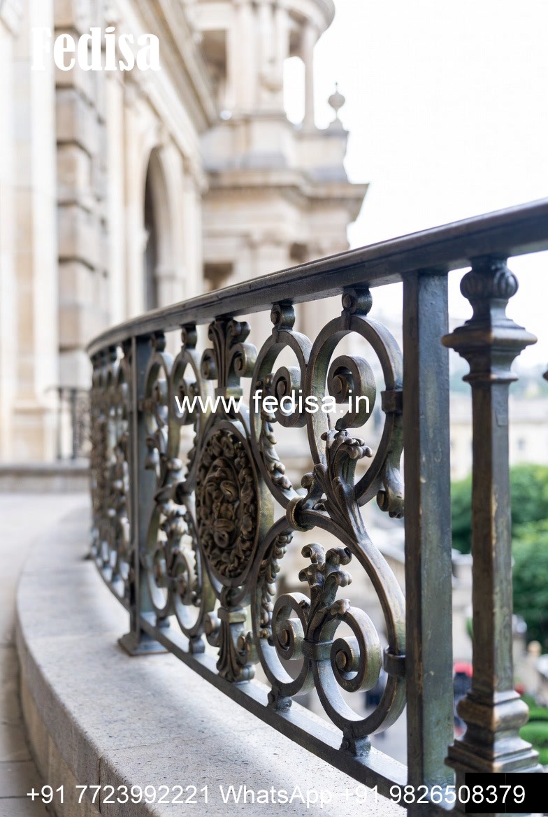 Elegant Brass Balcony Railing With Artistic Patterns Grill Design Square Tube