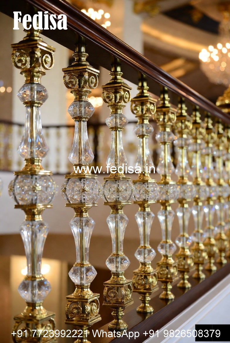 Elegant Brass Balcony Railing With Artistic Patterns Simple Wooden Railing Design For Stairs