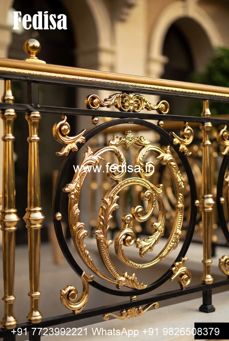 Elegant Brass Balcony Railing With Artistic Patterns Staircase Drawer Design