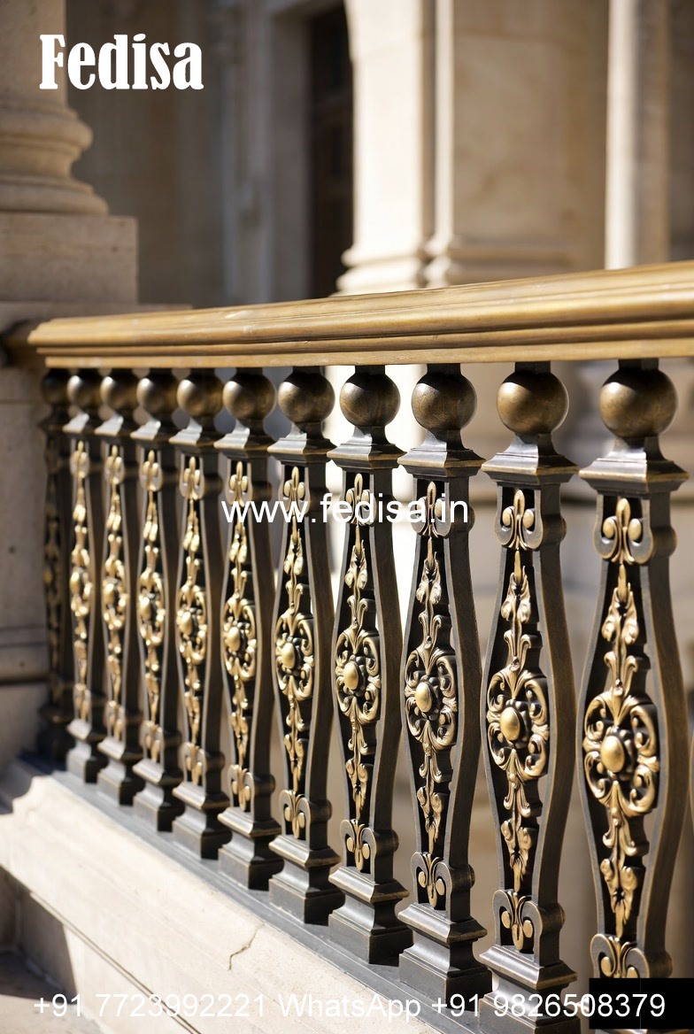 Elegant Brass Balcony Railing With Classic Design Stairs In Middle Of Room Interior Design