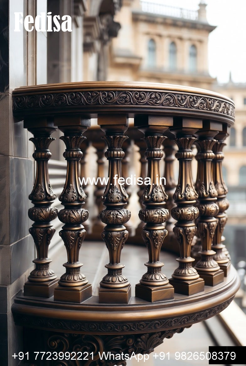 Brass Balcony Railing With Elegant Design Concrete Stairs Design Outdoor