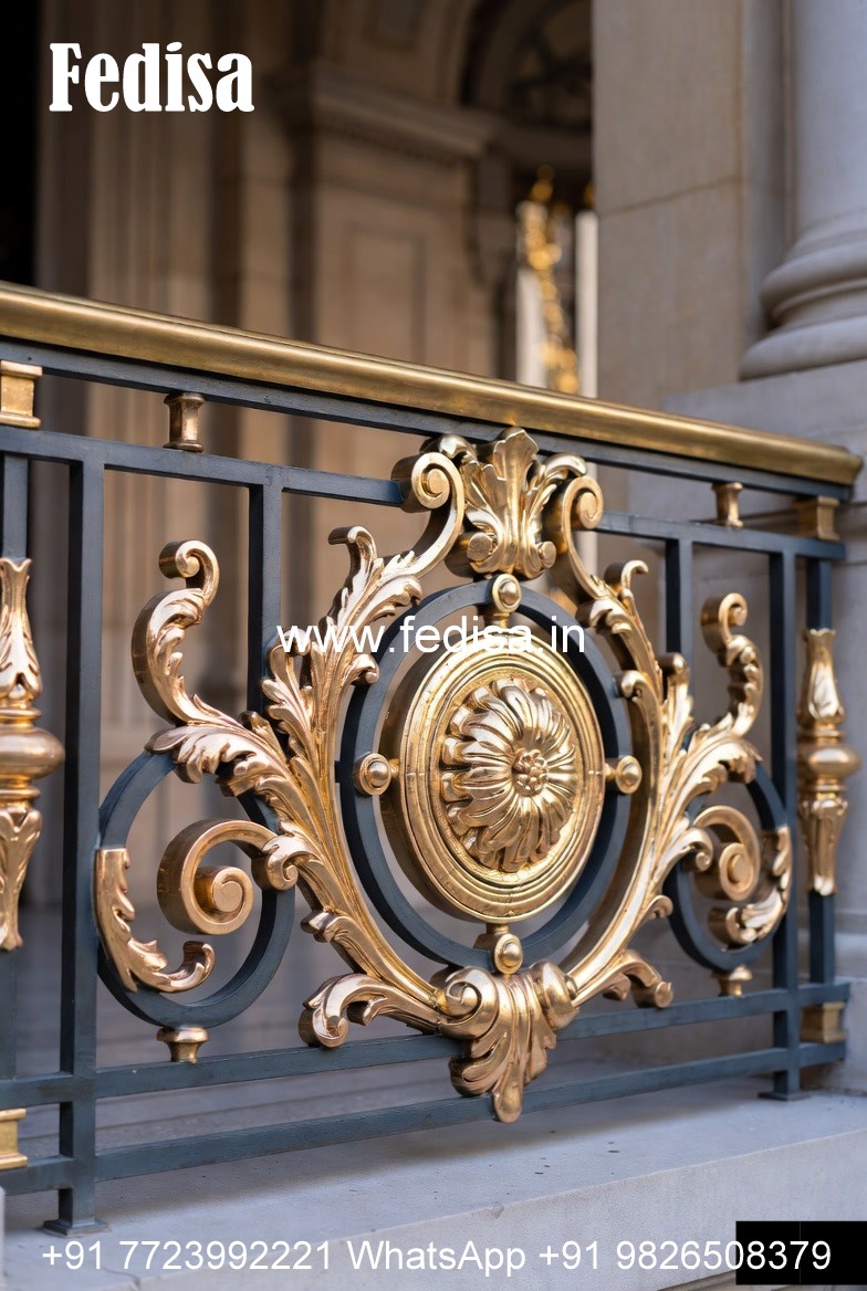 Elegant Brass Staircase Railing With Gold Finish Wall Window Grill Design