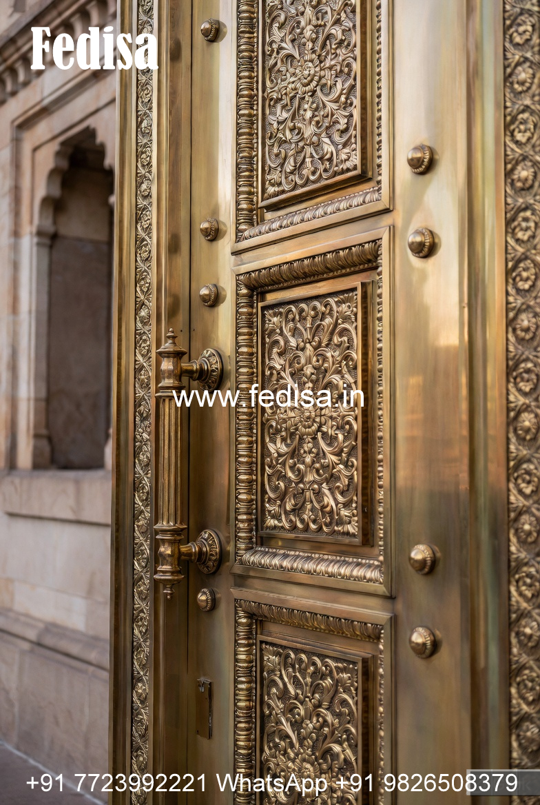 Luxury Brass Balcony Railing With Artistic Detailing Double Door Grill Design