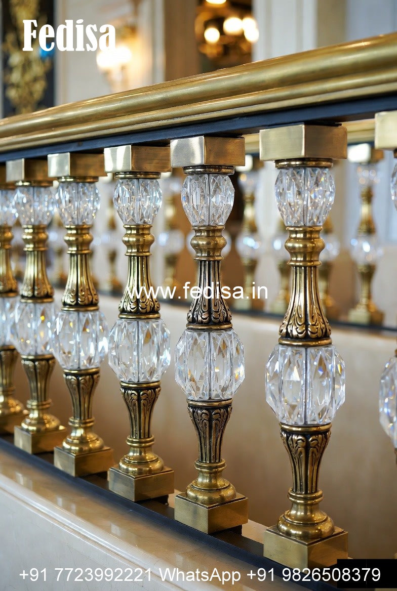 Luxury Brass Balcony Railing With Artistic Detailing Staircase Glass Design